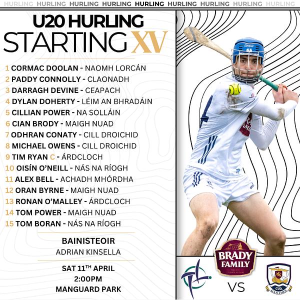 Adrian Kinsella and his management team have named their Kildare U20 Hurling panel to take on Galway in Tier 1 Round 2 of the Fulfil Leinster U20 Hurling Championship tomorrow in Manguard Park, Hawkfield at 2pm.