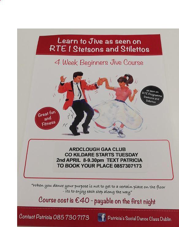 Jive classes in the club tomorrow evening Tuesday at 8pm. If you have not pre-registered don't worry, just turn up tonight. All are welcome.